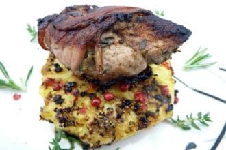 - Fleisch aus der Marinade herausnehmen, salzen und pfeffern. Die Pfaffenschnittchen mit dem Senf bestreichen und mit dem Speck umwickeln. In der Pfanne oder auf dem Grill auf beiden Seiten gut anbraten. Am Schluss den Deckel auf die Pfanne und bei mittlerer Hitze noch durchgaren lassen.