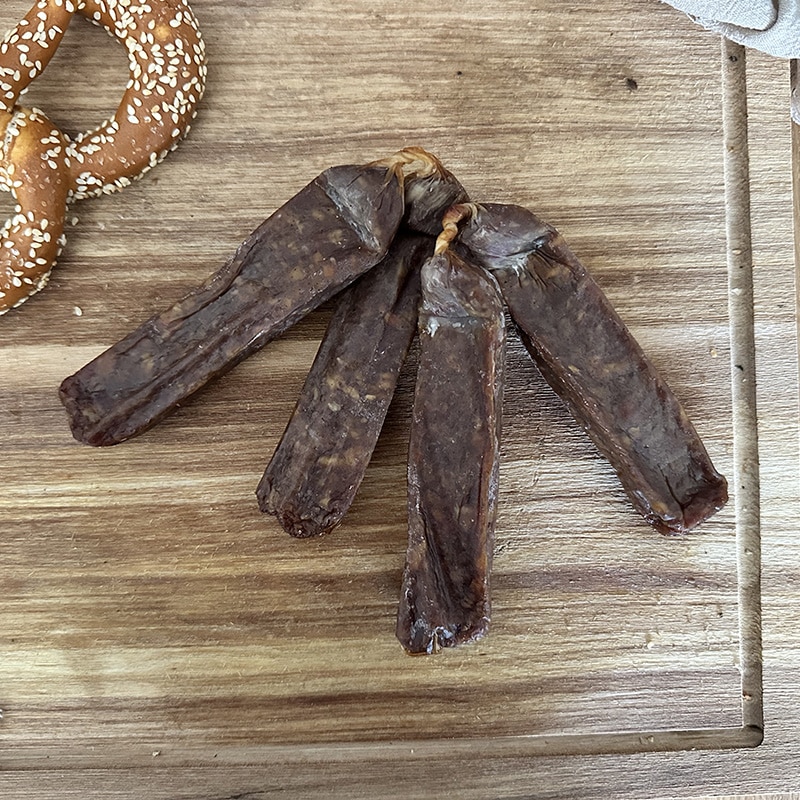 Durch die traditionelle Herstellung bleibt der Puten-Landjäger besonders aromatisch und rustikal. Ob unterwegs oder als Snack für zwischendurch – er bietet jederzeit einen herzhaften Genuss.