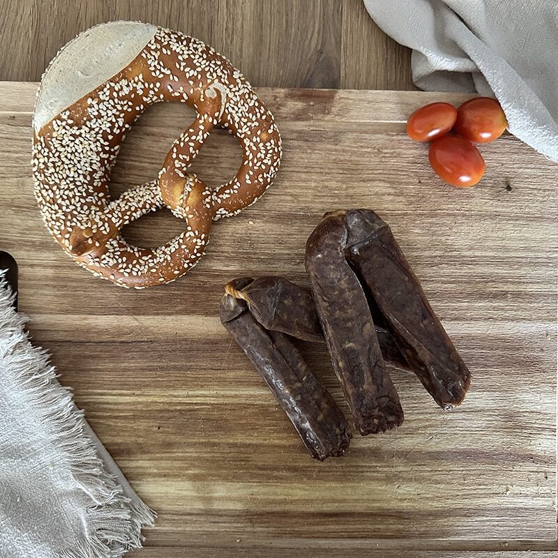 Unser Puten-Landjäger eignet sich perfekt als Snack für unterwegs, für Wanderungen, beim Camping oder als Bestandteil einer rustikalen Brotzeit.