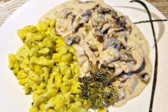 Puten-Geschnetzeltes nach Zürcher Art ist ein traditionelles Schweizer Gericht, das aus kleinen Putenstreifen, Champignons und Schalotten in einer leckeren Sauce aus Sahne und Weißwein zubereitet wird. Es ist ein köstliches und einfaches Gericht, das durch seine Aromen und Texturen überzeugt.